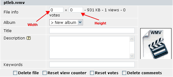 FTP upload both the video and (thumbnail or image) then batch-add. If you FTP upload the thumbnail, the thumbnail will be display in the batch add page instead of the default Coppermine thumbnail. If you upload an image it will look like the above screenshot. However, when the both files are added to the database, the thumbnail of the image will be used by the video.Note: If the first method is used and the image later deleted, the thumbnail will also be deleted and the default Coppermine thumbnails will be displayed, instead.